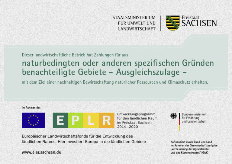 Dieser landwirtschaftliche Betrieb hat Zahlungen für aus naturbedingten oder anderen spezifischen Gründen benachteiligte Gebiete – Ausgleichszulage – mit dem Ziel einer nachhaltigen Bewirtschaftung natürlicher Ressourcen und Klimaschutz erhalten.