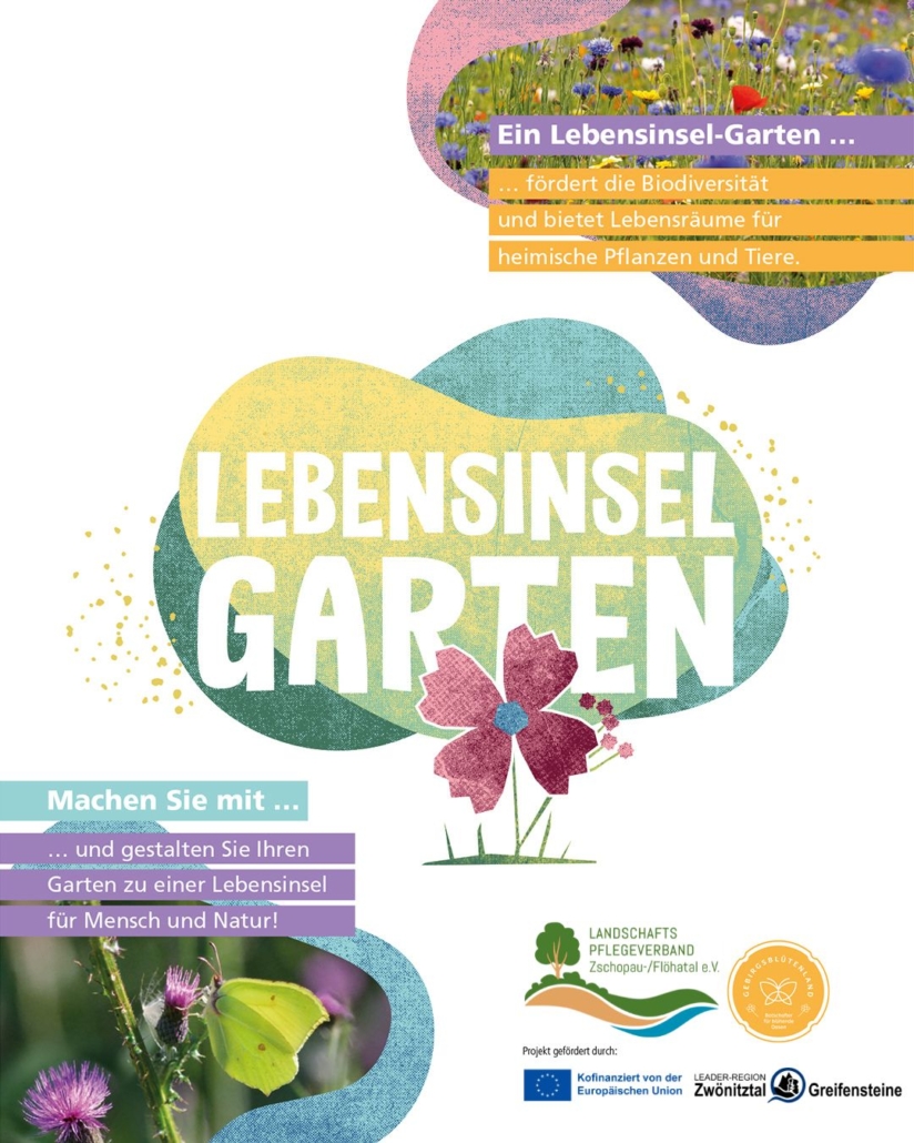 Die Lebensinselgarten-Zertifizierung ist ein besonderes Projekt im Rahmen des „Lebensinselprojektes“, welches wir vom Landschaftspflegeverband „Zschopau/Flöhatal“ e.V. gemeinsam mit unseren Blühbotschaftern in der LEADER-Region Zwönitztal-Greifensteine entwickelt haben.